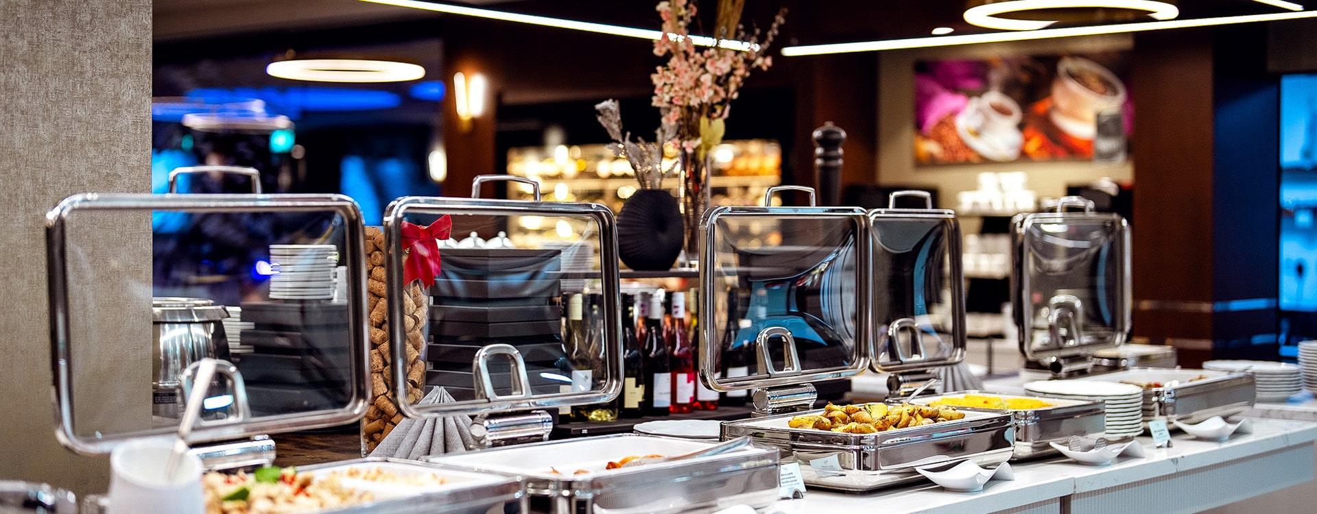 Ajánlatainkat mindig a felmerülő igények szerint állítjuk össze, figyelembe véve az egészséges étkezés, a minőségi vendéglátás, az aktuális piaci trendek és a fentarthatóság szempontokat is. Termeink kialakítása és felszereltsége (beépített hangosítás, mobil mikrofon, projektor és vászon, táncparkett, szabályozható világítás stb.) és a rendelkezésre álló különböző bútorzat (8-10 fős körasztalok, tábla- és bankett asztalok stb.) a legkülönfélébb rendezvények, esküvők sikeres lebonyolítását is lehetővé teszik, akár különleges dekorációval is.